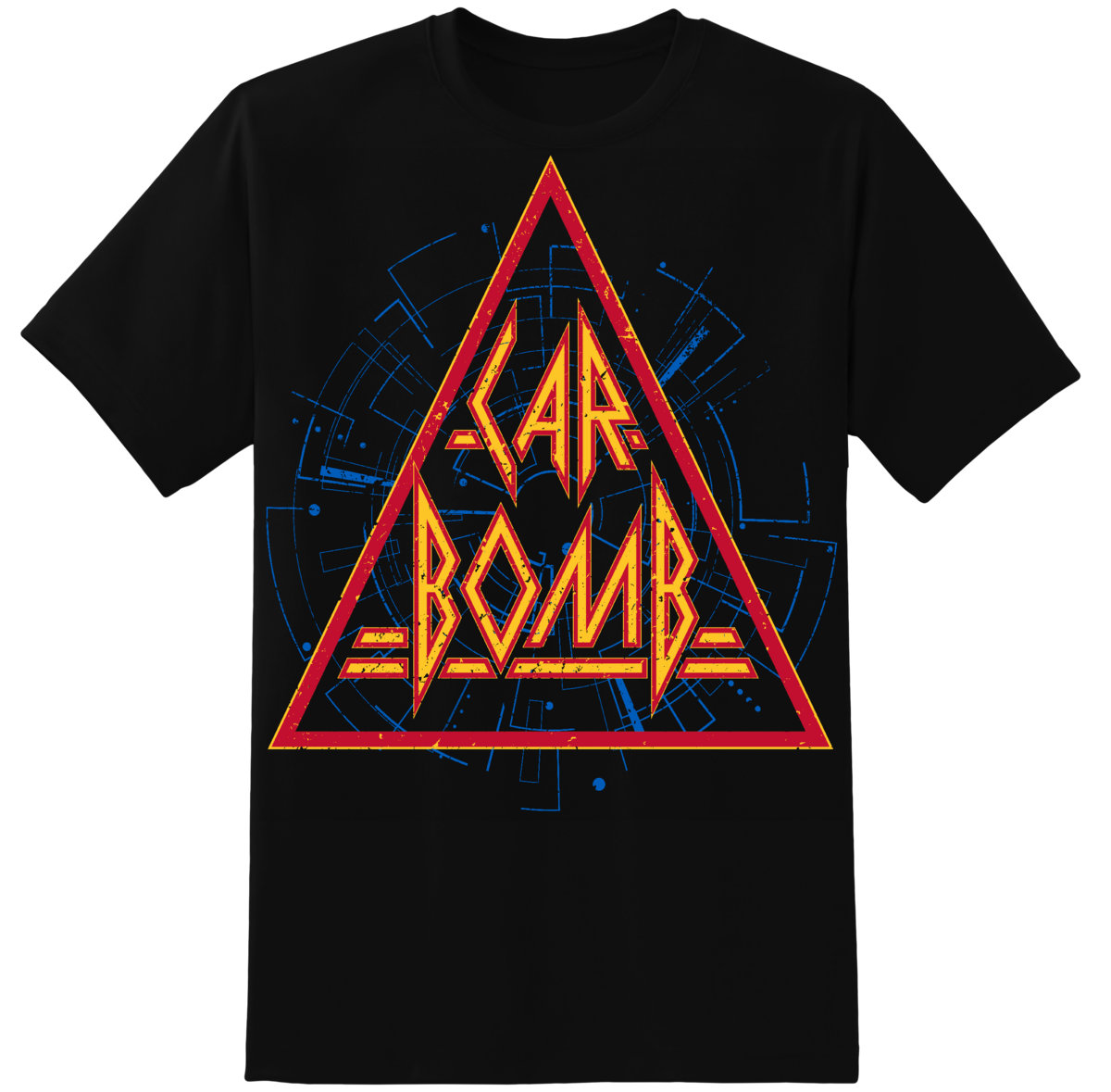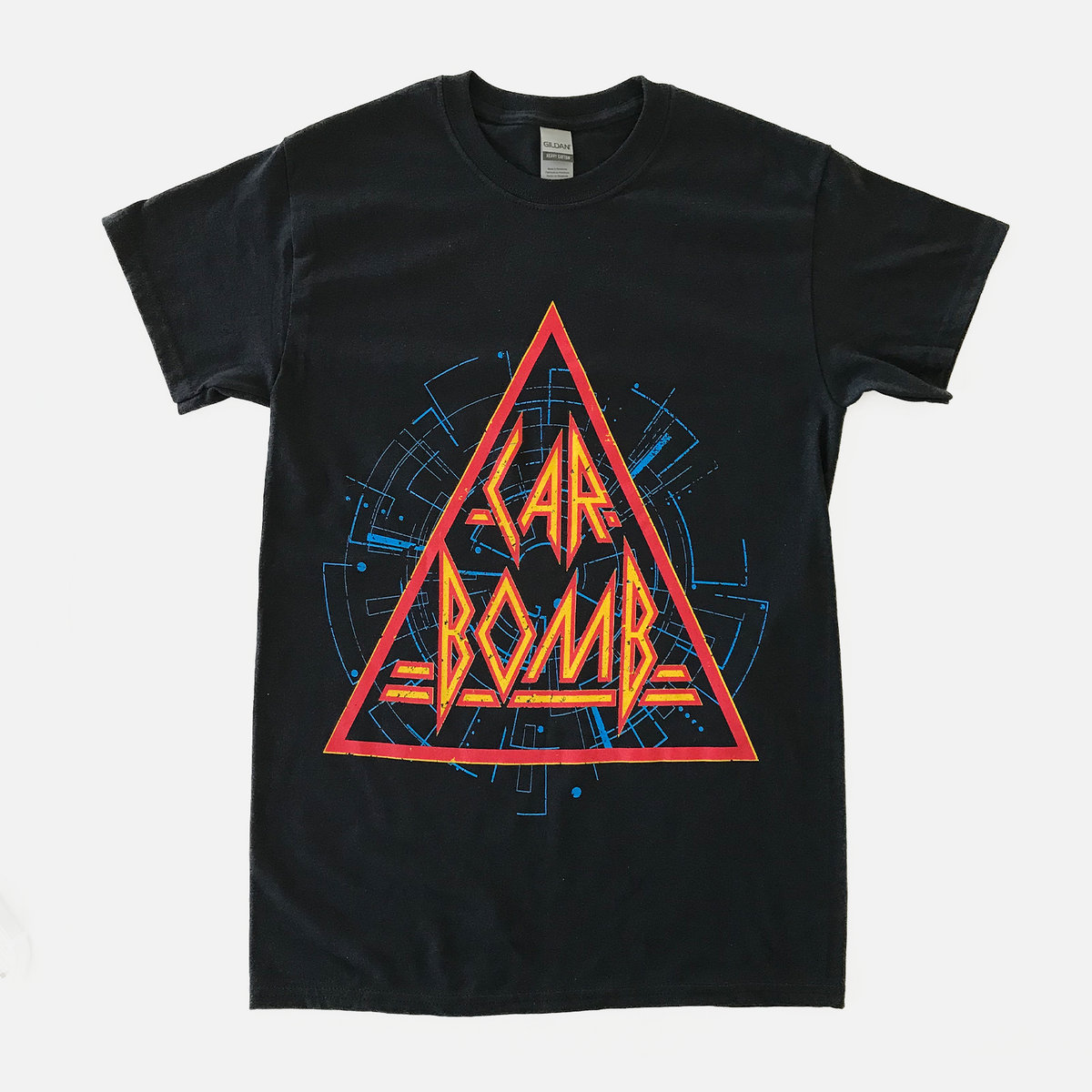 White Car Bomb Polygon Logo On Black Gildan Heavy Cotton Shirt